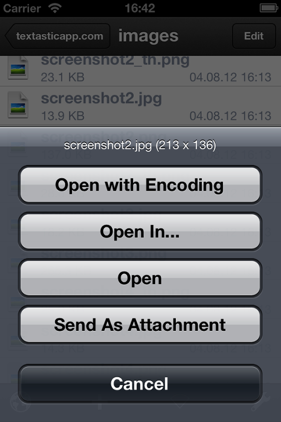Textastic supports the preview function of iOS which allows you to view image, pdf and office files.