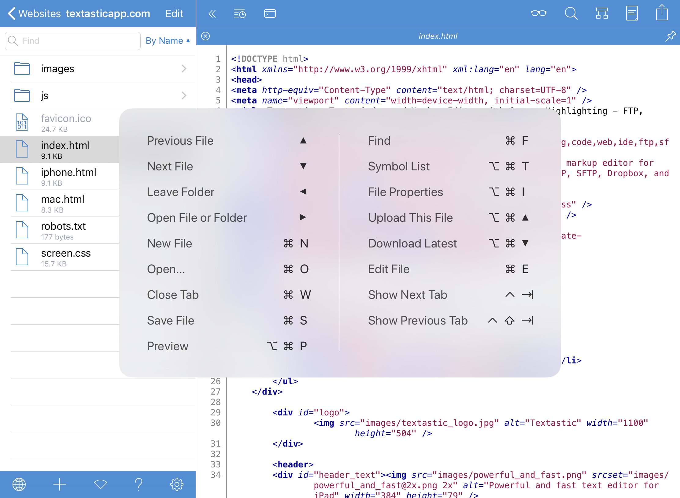 You can configure all keyboard shortcuts in Textastic’s settings.