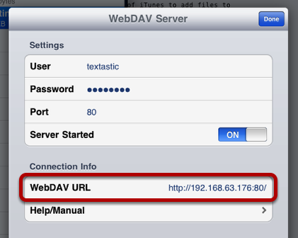 Windows Vista/Windows 7 users have two options for connecting to the Textastic WebDAV server: You can either map a network drive to the Files server, or create a network location. Both methods are described below.